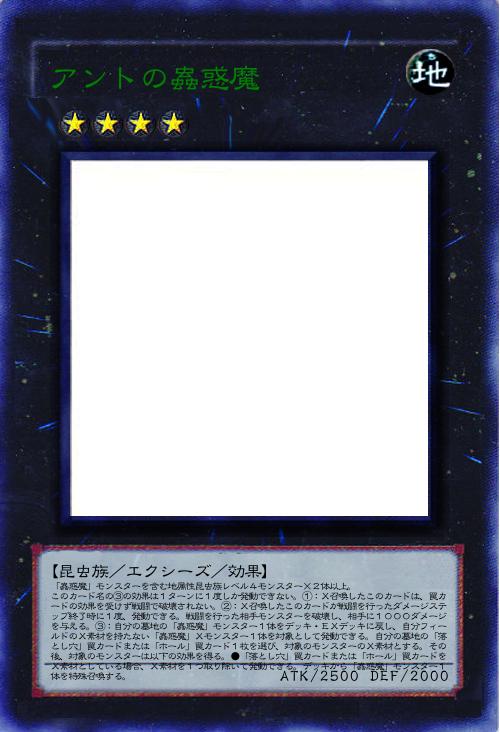 | 「蟲惑魔」モンスターを含む地属性昆虫族レベル4モンスター×2体以上。 このカード名の③の効果は1ターンに1度しか発動できない。①:X召喚したこのカードは、罠カードの効果を受けず戦闘で破壊されない。②:X召喚したこのカードが戦闘を行ったダメージステップ終了時に1度、発動できる。戦闘を行った相手モンスターを破壊し、相手に1000ダメージを与える。③:自分の墓地の「蟲惑魔」モンスター1体をデッキ・EXデッキに戻し、自分フィールドのX素材を持たない「蟲惑魔」Xモンスター1体を対象として発動できる。自分の墓地の「落とし穴」罠カードまたは「ホール」罠カード1枚を選び、対象のモンスターのX素材とする。その後、対象のモンスターは以下の効果を得る。●「落とし穴」罠カードまたは「ホール」罠カードをX素材としている場合、X素材を1つ取り除いて発動できる。デッキから「蟲惑魔」モンスター1体を特殊召喚する。 | |||