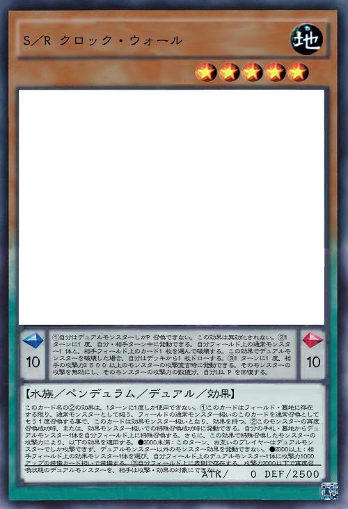 | ①自分はデュアルモンスターしかP召喚できない。この効果は無効化されない。②1ターンに1度、自分・相手ターン中に発動できる。自分フィールド上の通常モンスター1体と、相手フィールド上のカード1枚を選んで破壊する。この効果でデュアルモンスターを破壊した場合、自分はデッキから1枚ドローする。③1ターンに1度、相手の攻撃力2500以上のモンスターの攻撃宣言時に発動できる。そのモンスターの攻撃を無効にし、そのモンスターの攻撃力の数値分、自分はLPを回復する。 | |||