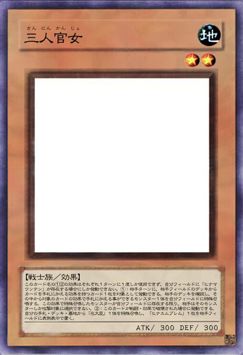 | このカード名の①②の効果はそれぞれ1ターンに1度しか使用できず、自分フィールドに「ヒナマウンテン」が存在する場合にしか発動できない。①:相手ターンに、相手フィールドのデッキからカードを手札に加える効果を持つカード1枚を対象として発動できる。相手のデッキを確認し、その中から対象のカードの効果で手札に加える事ができるモンスター1体を自分フィールドに特殊召喚する。この効果で特殊召喚したモンスターが自分フィールドに存在する限り、相手はそのモンスターしか攻撃対象に選択できない。②:このカードが戦闘・効果で破壊された場合に発動できる。自分の手札・デッキ・墓地から「左大臣」1体を特殊召喚し、「ヒナエムブレム」1枚を相手フィールドに表側表示で置く。 | |||