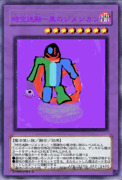| 「時空迷融ージメンカン」+闇属性の魔法使い族のレベル6以上 ①このカードが融合召喚及び特殊召喚に成功したら、デッキから魔法カードをデッキから3枚まで手札に加える ②相手が魔法カードを使ったら以下の効果から選べる ●墓地から魔法使いモンスターを一体効果を無効にして特殊召喚する ●墓地の魔法カードをセットできる、またセットした魔法カードをはセットしたターンに発動できる ③墓地に送られた時、デッキから闇属性の魔法使い族のレベル6以上を特殊召喚する | |||