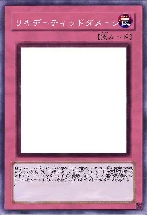 | 自分フィールドにカードが存在しない場合、このカードの発動は手札からもできる。①:相手によって自分デッキのカードが墓地及び除外されたターンのエンドフェイズに発動できる。自分の墓地及び除外されているカード1枚につき相手に200ポイントのダメージを与える。 | |||