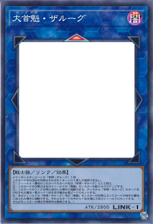 | メインモンスターゾーンの「首領・ザルーグ」1体 このカード名の③④の効果はそれぞれ1ターンに1度しか使用できない。 ①:フィールド・墓地のこのカードのカード名は「首領・ザルーグ」として扱う。 ②:このカードの攻撃力は自分フィールドの「黒蠍」モンスターの数×400アップする。 ③:このカードがリンク召喚に成功した場合に発動できる。デッキから「首領・ザルーグ」のカード名が記された魔法・罠カード1枚を自分魔法&罠ゾーンにセットする。 ④:自分フィールドの「首領・ザルーグ」及び「黒蠍」モンスターの効果によってカードが相手の墓地に送られた場合に発動できる。それらのカードの中から1枚を選んで自分フィールドにセットする。(それがモンスターの場合召喚条件は無視できる。) | |||