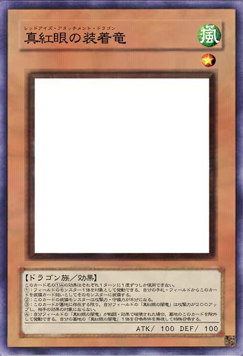 | このカード名の①④の効果はそれぞれ1ターンに1度ずつしか使用できない。 ①:フィールドのモンスター1体を対象として発動できる。自分の手札・フィールドからこのカードを装備カード扱いとしてそのモンスターに装備する。 ②:このカードの装備モンスターは攻撃力・守備力が半分になる。 ③:このカードが墓地に存在する限り、自分フィールドの「真紅眼の闇竜」は攻撃力が200アップし、相手の効果の対象にならない。 ④:自分フィールドの「真紅眼の闇竜」が戦闘・効果で破壊された場合、墓地のこのカードを除外して発動できる。自分の墓地の「真紅眼の闇竜」1体を召喚条件を無視して特殊召喚する。 | |||