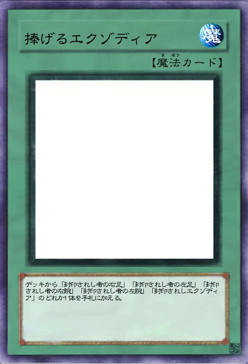 | デッキから「封印されし者の右足」「封印されし者の左足」「封印されし者の右腕」「封印されし者の左腕」「封印されしエクゾディア」のどれか1体を手札に加える。 | |||