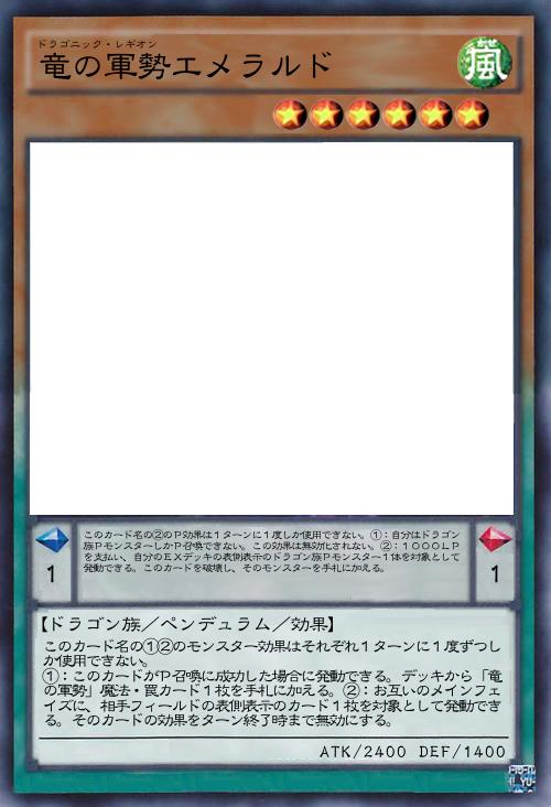| このカード名の①②のモンスター効果はそれぞれ1ターンに1度ずつしか使用できない。 ①:このカードがP召喚に成功した場合に発動できる。デッキから「竜の軍勢」魔法・罠カード1枚を手札に加える。②:お互いのメインフェイズに、相手フィールドの表側表示のカード1枚を対象として発動できる。そのカードの効果をターン終了時まで無効にする。 | |||
