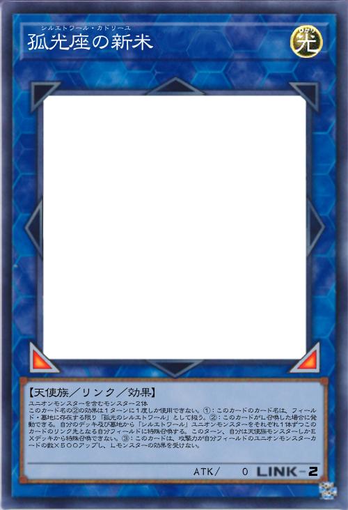 | ユニオンモンスターを含むモンスター2体 このカード名の②の効果は1ターンに1度しか使用できない。①:このカードのカード名は、フィールド・墓地に存在する限り「孤光のシルエトワール」として扱う。②:このカードがL召喚した場合に発動できる。自分のデッキ及び墓地から「シルエトワール」ユニオンモンスターをそれぞれ1体ずつこのカードのリンク先となる自分フィールドに特殊召喚する。このターン、自分は天使族モンスターしかEXデッキから特殊召喚できない。③:このカードは、攻撃力が自分フィールドのユニオンモンスターカードの数×500アップし、Lモンスターの効果を受けない。 | |||