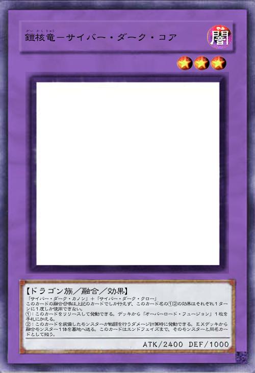 | 「サイバー・ダーク・カノン」+「サイバー・ダーク・クロー」 このカードの融合召喚は上記のカードでしか行えず、このカード名の①②の効果はそれぞれ1ターンに1度しか使用できない。 ①:このカードをリリースして発動できる。デッキから「オーバーロード・フュージョン」1枚を手札に加える。 ②:このカードを装備したモンスターが戦闘を行うダメージ計算時に発動できる。EXデッキから融合モンスター1体を墓地へ送る。このカードはエンドフェイズまで、そのモンスターと同名カードとして扱う。 | |||