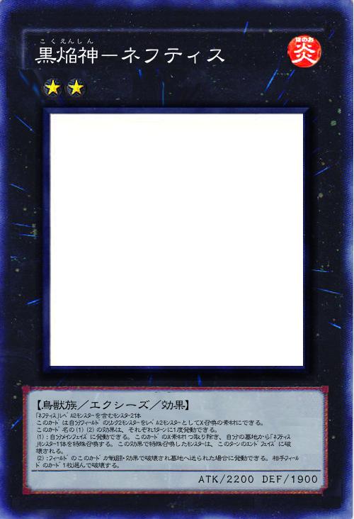 | 「ネフティス」レベル2モンスターを含むモンスター2体 このカードは自分フィールドのリンク2モンスターをレベル2モンスターとしてX召喚の素材にできる。 このカード名の(1)(2)の効果は、それぞれ1ターンに1度発動できる。 (1):自分メインフェイズに発動できる。このカードのX素材1つ取り除き、自分の墓地から「ネフティス」モンスター1体を特殊召喚する。この効果で特殊召喚したモンスターは、このターンのエンドフェイズに破壊される。 (2):フィールドのこのカードが戦闘・効果で破壊され墓地へ送られた場合に発動できる。相手フィールドのカード1枚選んで破壊する。 | |||