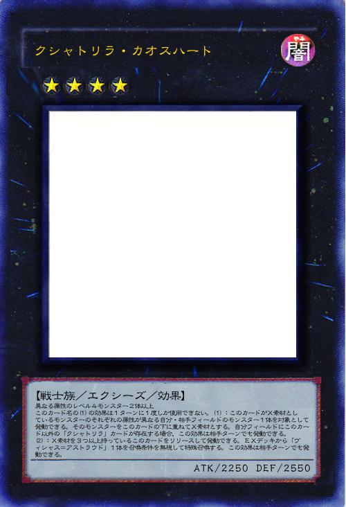 | 異なる属性のレベル4モンスター2体以上 このカード名の(1)の効果は1ターンに1度しか使用できない。(1):このカードがX素材としているモンスターのそれぞれの属性が異なる自分・相手フィールドのモンスター1体を対象として発動できる。そのモンスターをこのカードの下に重ねてX素材とする。自分フィールドにこのカード以外の「クシャトリラ」カードが存在する場合、この効果は相手ターンでも発動できる。 (2):X素材を3つ以上持っているこのカードをリリースして発動できる。EXデッキから「ヴィシャス=アストラウド」1体を召喚条件を無視して特殊召喚する。この効果は相手ターンでも発動できる。 | |||