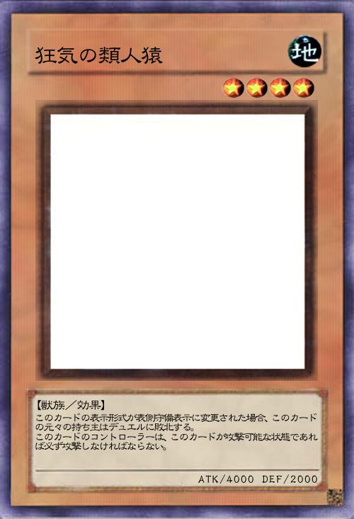 | このカードの表示形式が表側守備表示に変更された場合、このカードの元々の持ち主はデュエルに敗北する。 このカードのコントローラーは、このカードが攻撃可能な状態であれば必ず攻撃しなければならない。 | |||