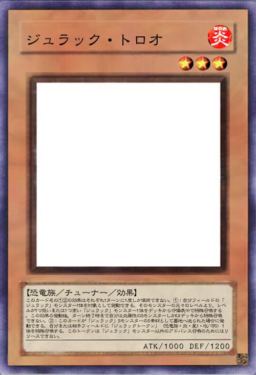 | このカード名の①②の効果はそれぞれ1ターンに1度しか使用できない。①:自分フィールドの「ジュラック」モンスター1体を対象として発動できる。そのモンスターの元々のレベルより、レベルが1つ低いまたは1つ高い「ジュラック」モンスター1体をデッキから守備表示で特殊召喚する。この効果の発動後、ターン終了時まで自分は炎属性のSモンスターしかEXデッキから特殊召喚できない。②:このカードが「ジュラック」SモンスターのS素材として墓地へ送られた場合に発動できる。自分または相手フィールドに「ジュラックトークン」(恐竜族・炎・星1・攻/守0)1体を特殊召喚する。このトークンは「ジュラック」モンスター以外のアドバンス召喚のためにはリリースできない。 | |||