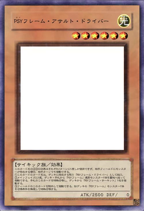 | このカード名の②③の効果はそれぞれ1ターンに1度しか使用できず、相手フィールドにモンスターが存在する場合、相手ターンでも発動できる。 ①このカードのカード名は、デッキに存在する限り「PSYフレーム・ドライバー」として扱う。 ②メインフェイズに1度、デッキ・手札から「PSYフレーム」通常モンスター1体を墓地へ送って発動できる。手札のこのカードを特殊召喚し、デッキから「PSYフレーム・サーキット」1枚を発動する。 ③フィールドのこのカードを除外して発動できる。EXデッキの「PSYフレーム」モンスター1体を召喚条件を無視して特殊召喚する。 | |||