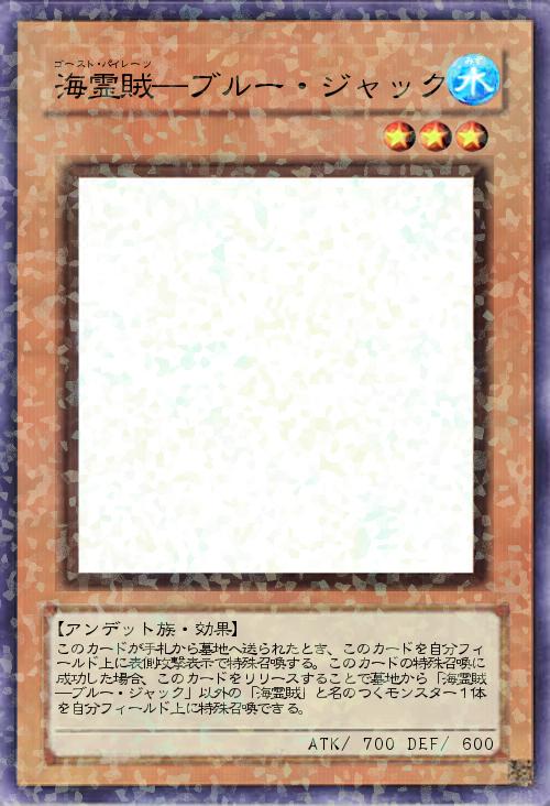 「特殊召喚時に自身と墓地の海霊賊を入れ替える効果を持つ人。シンクロ召喚のレベル調整、お宝カウンター稼ぎにどうぞ。あと、海霊賊にはレベル7モンスターが登場予定なので純粋に打点強化もいいかもです。ソーマブリンガーにブルージャックってかわいい中ボスが居たお!(何。全然関係無いですが、オリンピック開会式を見るために5時に起き・・・ってあんまいつもとかわんないですねry」(2012-07-28 06:28)