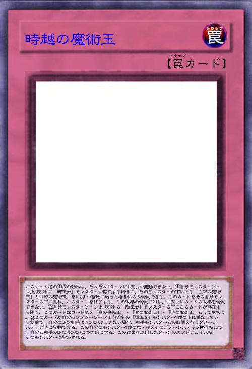 | このカード名の①③の効果は、それぞれ1ターンに1度しか発動できない。①自分モンスターゾーン上(表側)に「輝王女」モンスターが存在する場合に、そのモンスターの下にある「白銀の魔術玉」と「時の魔術玉」を1枚ずつ墓地に送った場合にのみ発動できる。このカードをその自分モンスターの下に重ね、このターンを終了する。この効果の発動に対し、お互いにカードの効果を発動できない。②自分モンスターゾーン上(表側)の「輝王女」モンスターの下にこのカードが存在する限り、このカードはカード名を「白の魔術玉」・「空の魔術玉」・「時の魔術玉」としても扱う。③このカードが自分モンスターゾーン上(表側)の「輝王女」モンスター1体の下に重なっている状態で、自分のLPが相手より2000以上少ない場合、相手モンスターとの戦闘を行うダメージステップ時に発動できる。この自分のモンスター1体の攻・守をそのダメージステップ終了時まで、自分と相手のLPの差2000につき倍にする。この効果を適用したターンのエンドフェイズ時、そのモンスターは除外される。 | |||