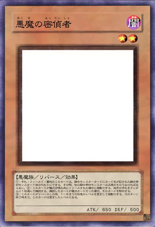 | ①:手札・フィールド・墓地のこのカードは、融合モンスターカードにカード名が記された融合素材モンスター1体の代わりにできる。その際、他の融合素材モンスターは正規のものでなければならない。②:このカードが儀式召喚の為にリリースされた場合に発動できる。相手の手札をランダムに1枚選んで確認する。確認したカードが魔法カードだった場合、そのカードを除外する。 ③:このカードがリバースした時、1~8までの任意のレベルを宣言して発動できる。次のターン終了時まで、このカードは宣言したレベルになる。 | |||