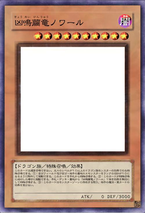 | このカードは通常召喚できない。元々のレベルが10以上のドラゴン族モンスターの効果でのみ特殊召喚できる。①:自分フィールド及び自分・相手の墓地のXモンスターをランクの合計が10になるように除外して発動できる。このカードを手札から特殊召喚する。②:このカードが特殊召喚に成功した場合に発動できる。手札・デッキ・墓地から「凶鳴繭竜ノワール」1体を効果を無効にして特殊召喚する。③:このカードはモンスターゾーンに存在する限り、相手の魔法・罠カードの効果を受けない。 | |||