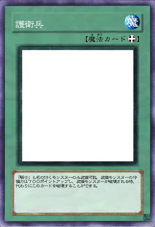| 「騎士」と名の付くモンスターのみ装備可能。装備モンスターの守備力は700ポイントアップし、装備モンスターが破壊される時、代わりにこのカードを破壊することができる。 | |||