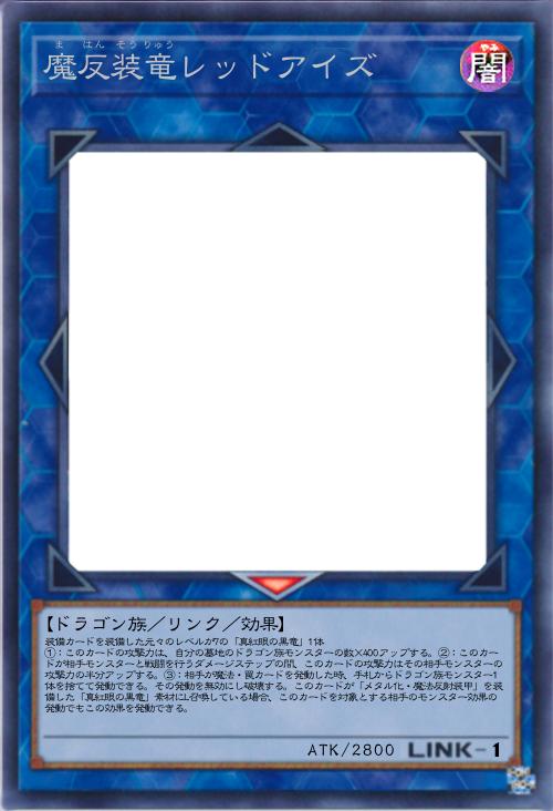 | 装備カードを装備した元々のレベルが7の「真紅眼の黒竜」1体 ①:このカードの攻撃力は、自分の墓地のドラゴン族モンスターの数×400アップする。②:このカードが相手モンスターと戦闘を行うダメージステップの間、このカードの攻撃力はその相手モンスターの攻撃力の半分アップする。③:相手が魔法・罠カードを発動した時、手札からドラゴン族モンスター1体を捨てて発動できる。その発動を無効にし破壊する。このカードが「メタル化・魔法反射装甲」を装備した「真紅眼の黒竜」素材にL召喚している場合、このカードを対象とする相手のモンスター効果の発動でもこの効果を発動できる。 | |||