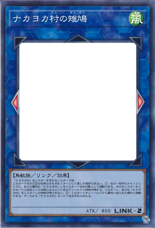 | 「ナカヨカ村」モンスターを含むモンスター2体 このカード名の①②の効果はそれぞれ1ターンに1度しか使用できない。①:自分・相手のメインフェイズに、自分の墓地の「ナカヨカ村」Lモンスター1体を対象として発動できる。そのモンスターをこのカードと相互リンク状態になるように自分フィールドに特殊召喚する。このターン、自分は「ナカヨカ村」モンスターしか特殊召喚できない。②:このカードがフィールドから墓地へ送られた場合に発動できる。デッキから「ナカヨカ村」カード1枚を手札に加える。 | |||