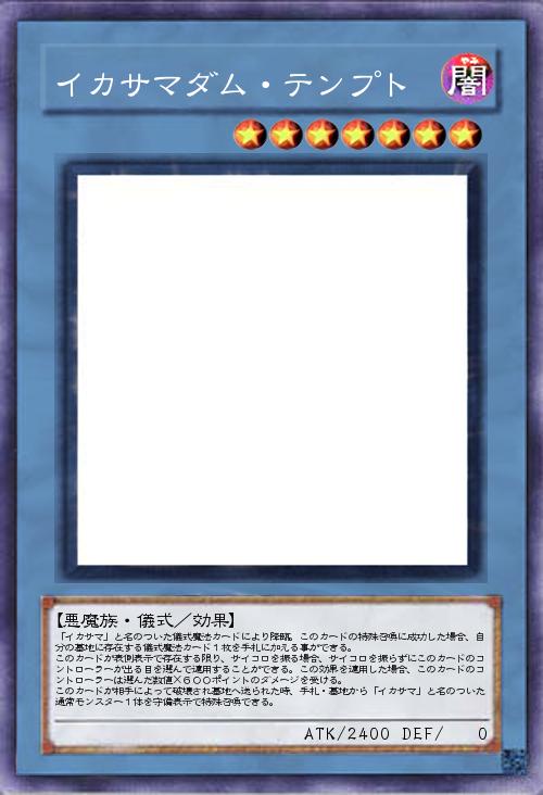「イカサマ」と名のついた儀式魔法カードにより降臨。このカードの特殊召喚に成功した場合、自分の墓地に存在する儀式魔法カード1枚を手札に加える事ができる。 このカードが表側表示で存在する限り、サイコロを振る場合、サイコロを振らずにこのカードのコントローラーが出る目を選んで適用することができる。この効果を適用した場合、このカードのコントローラーは選んだ数値×600ポイントのダメージを受ける。 このカードが相手によって破壊され墓地へ送られた時、手札・墓地から「イカサマ」と名のついた通常モンスター1体を守備表示で特殊召喚できる。 |