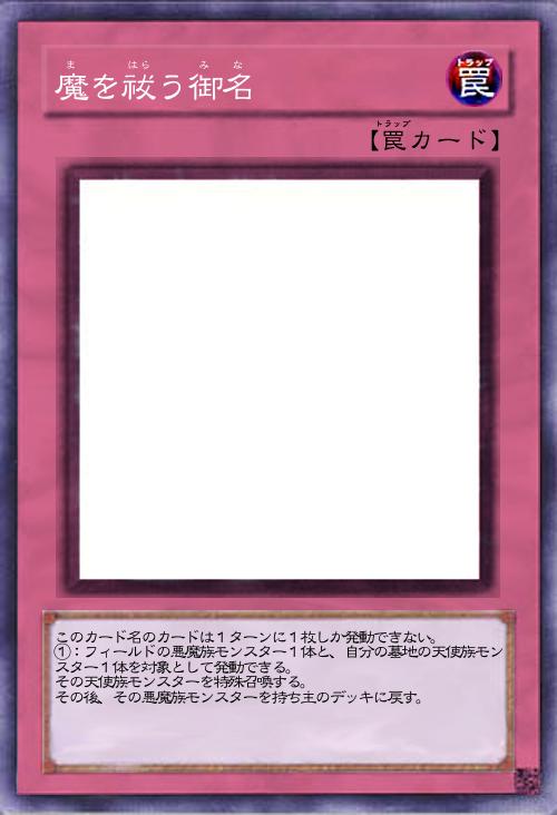 | このカード名のカードは1ターンに1枚しか発動できない。 ①:フィールドの悪魔族モンスター1体と、自分の墓地の天使族モンスター1体を対象として発動できる。 その天使族モンスターを特殊召喚する。 その後、その悪魔族モンスターを持ち主のデッキに戻す。 | |||