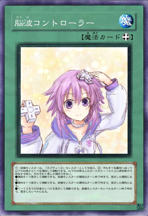 | ①:装備モンスターは、「ネプテューヌ」モンスターとしても扱う。②:手札を1枚墓地へ送って以下の効果から1つを選択して発動できる。以下の効果はこのカードがフィールド上に表側表示で存在する限り、それぞれ1度しか選択できない。 ●種族を1つ宣言して発動できる。装備モンスターの種族はターン終了時まで、宣言した種族になる。 ●属性を1つ宣言して発動できる。装備モンスターの属性はターン終了時まで、宣言した属性になる。 ●1~12までの任意のレべルを宣言して発動できる。装備モンスターのレベルはターン終了時まで、宣言したレベルになる。 | |||