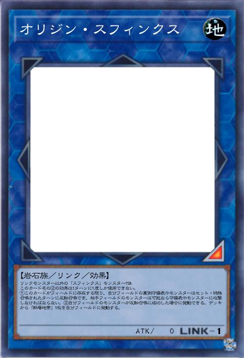 | リンクモンスター以外の「スフィンクス」モンスター1体 このカード名の②の効果は1ターンに1度しか使用できない。 ①このカードがフィールドに存在する限り、自分フィールドの裏側守備表示モンスターはセット・特殊召喚されたターンに反転召喚でき、相手フィールドのモンスターは可能なら守備表示モンスターに攻撃しなければならない。②自分フィールドのモンスターが反転召喚に成功した場合に発動できる。デッキから「断層地帯」1枚を自分フィールドに発動する。 | |||