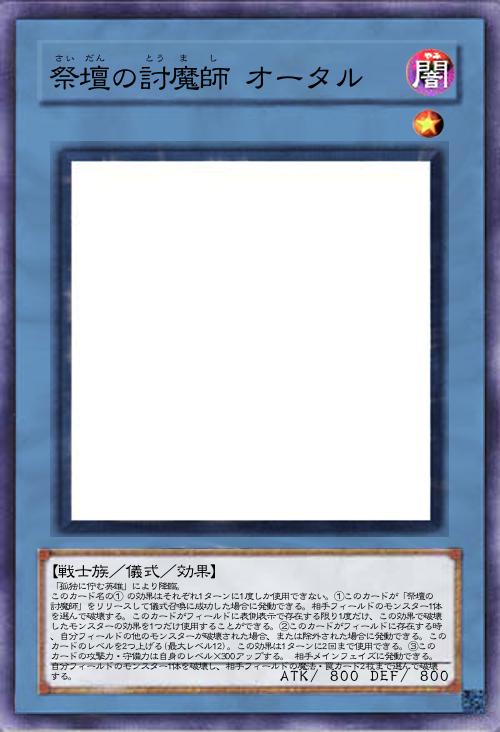 | 「孤独に佇む英雄」により降臨。 このカード名の①➃の効果はそれぞれ1ターンに1度しか使用できない。①このカードが「祭壇の討魔師」をリリースして儀式召喚に成功した場合に発動できる。相手フィールドのモンスター1体を選んで破壊する。このカードがフィールドに表側表示で存在する限り1度だけ、この効果で破壊したモンスターの効果を1つだけ使用することができる。②このカードがフィールドに存在する時、自分フィールドの他のモンスターが破壊された場合、または除外された場合に発動できる。このカードのレベルを2つ上げる(最大レベル12)。この効果は1ターンに2回まで使用できる。③このカードの攻撃力・守備力は自身のレベル×300アップする。➃相手メインフェイズに発動できる。自分フィールドのモンスター1体を破壊し、相手フィールドの魔法・罠カード2枚まで選んで破壊する。 | |||