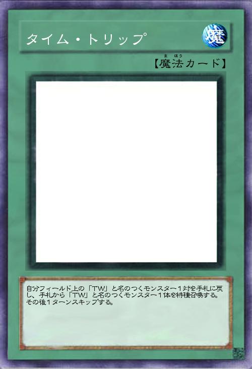 | 自分フィールド上の「TW」と名のつくモンスター1対を手札に戻し、手札から「TW」と名のつくモンスター1体を特種召喚する。その後1ターンスキップする。 | |||