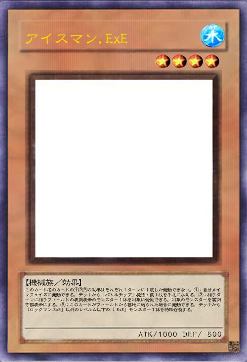 | このカード名のカードの①②③の効果はそれぞれ1ターンに1度しか発動できない。①:自分メインフェイズに発動できる。デッキから「バトルチップ」魔法・罠1枚を手札に加える。②:相手ターンに相手フィールドの表側表示のモンスター1体を対象に発動できる。対象のモンスターを裏側守備表示にする。③:このカードがフィールドから墓地に送られた場合に発動できる。デッキから「ロックマン.ExE」以外のレベル4以下の「.ExE」モンスター1体を特殊召喚する。 | |||