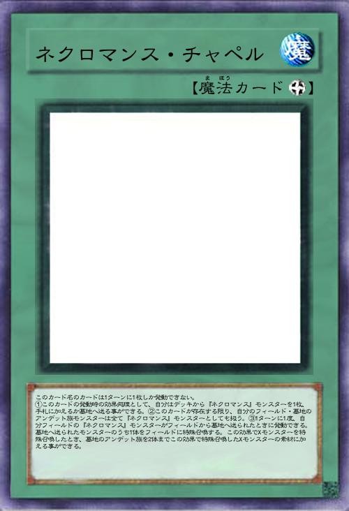 「ネクロマンスのフィールド魔法です。発動時にサーチか墓地肥やしし、モンスターが除去られればすぐに復活させるアンデット族らしいフィールドにしてみました。
