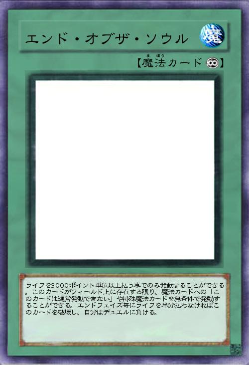 | ライフを3000ポイント単位以上払う事でのみ発動することができる。このカードがフィールド上に存在する限り、魔法カードへの「このカードは通常発動できない」や特殊魔法カードを無条件で発動することができる。エンドフェイズ毎にライフを半分払わなければこのカードを破壊し、自分はデュエルに負ける。 | |||