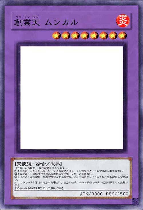 | 「アズールの宿怨」+属性が異なるモンスター ①:このカードがモンスターゾーンに存在する限り、自分は魔法カードの効果を発動できない。 ②:このカードは特殊召喚の為の素材にできず、リリースできない。 ③:「アズールの宿怨」を融合素材とする融合モンスターは自分フィールドに1体しか存在できない。 ④:このカードが墓地へ送られた場合に、自分・相手フィールドのカード1枚を対象として発動できる。 そのカードの効果を無効にして墓地に送る。 | |||