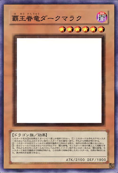 | このカード名の③の効果は1ターンに1度しか使用できない。①:このカードは手札のPモンスターまたはレベル5以上のドラゴン族モンスター1体を墓地へ捨て、手札から特殊召喚できる。 ②:このカードは自分フィールドに表側守備表示で存在する限り、相手の効果の対象にならない。③:自分フィールドの元々のレベルが8以下の「覇王眷竜」モンスター1体を対象として発動できる。手札からそのモンスターと元々のレベルが同じドラゴン族Pモンスターまたは「覇王眷竜」モンスター1体を守備表示で特殊召喚する。この効果で特殊召喚したモンスターは、効果が無効になり、表示形式を変更できない。 | |||