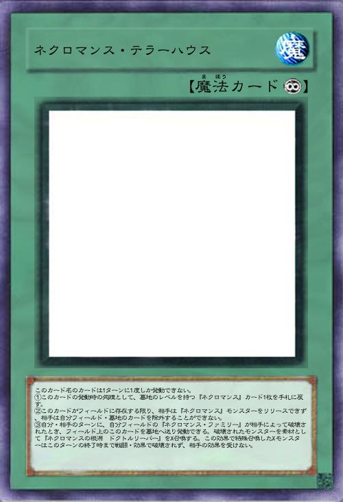 | このカード名のカードは1ターンに1度しか発動できない。 ①このカードの発動時の処理として、墓地のレベルを持つ『ネクロマンス』カード1枚を手札に戻す。 ②このカードがフィールドに存在する限り、相手は『ネクロマンス』モンスターをリリースできず、相手は自分フィールド・墓地のカードを除外することができない。 ③自分・相手のターンに、自分フィールドの『ネクロマンス・ファミリー』が相手によって破壊されたとき、フィールド上のこのカードを墓地へ送り発動できる。破壊されたモンスターを素材として『ネクロマンスの根源 ドクトルリーパー』をX召喚する。この効果で特殊召喚したXモンスターはこのターンの終了時まで戦闘・効果で破壊されず、相手の効果を受けない。 | |||