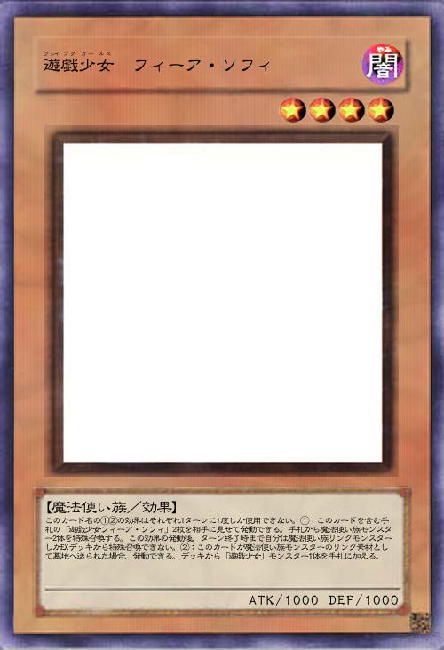 | このカード名の①②の効果はそれぞれ1ターンに1度しか使用できない。①:このカードを含む手札の「遊戯少女フィーア・ソフィ」2枚を相手に見せて発動できる。手札から魔法使い族モンスター2体を特殊召喚する。この効果の発動後、ターン終了時まで自分は魔法使い族リンクモンスターしかEXデッキから特殊召喚できない。②:このカードが魔法使い族モンスターのリンク素材として墓地へ送られた場合、発動できる。デッキから「遊戯少女」モンスター1体を手札に加える。 | |||