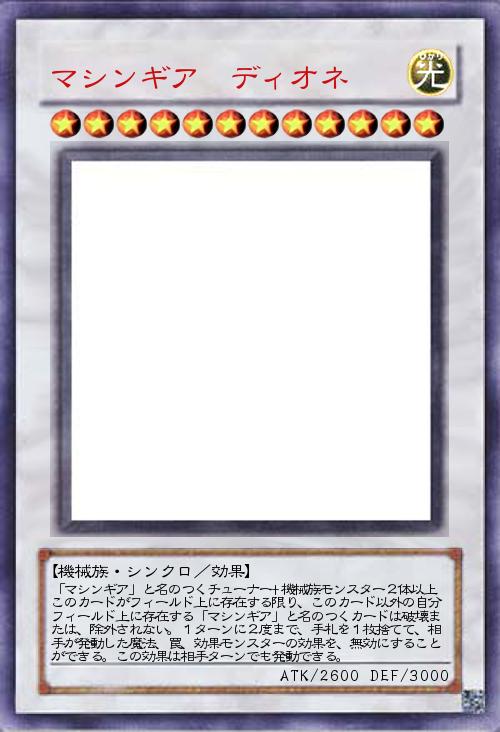 「マシンギア ディオネ訂正版。今度は逆に強すぎな気がしたので攻撃力を2600に。」(2012-07-30 12:30)