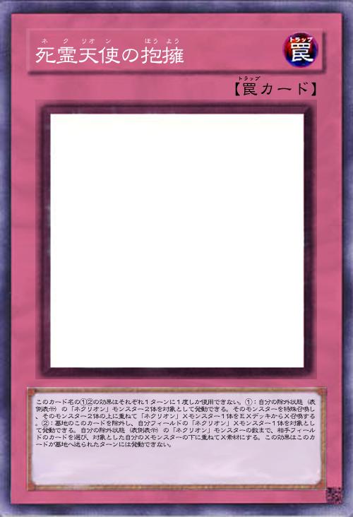 | このカード名の①②の効果はそれぞれ1ターンに1度しか使用できない。①:自分の除外状態(表側表示)の「ネクリオン」モンスター2体を対象として発動できる。そのモンスターを特殊召喚し、そのモンスター2体の上に重ねて「ネクリオン」Ⅹモンスター1体をEXデッキからⅩ召喚する。②:墓地のこのカードを除外し、自分フィールドの「ネクリオン」Xモンスター1体を対象として発動できる。自分の除外状態(表側表示)の「ネクリオン」モンスターの数まで、相手フィールドのカードを選び、対象とした自分のXモンスターの下に重ねてX素材にする。この効果はこのカードが墓地へ送られたターンには発動できない。 | |||