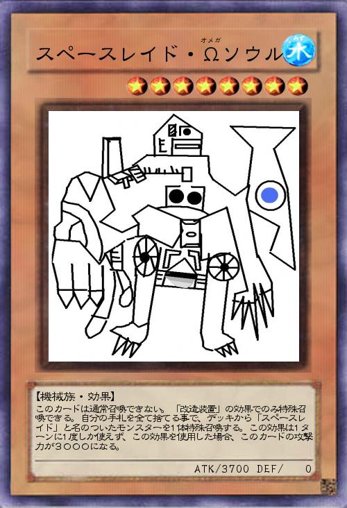 | このカードは通常召喚できない。「改造装置」の効果でのみ特殊召喚できる。自分の手札を全て捨てる事で、デッキから「スペースレイド」と名のついたモンスターを1体特殊召喚する。この効果は1ターンに1度しか使えず、この効果を使用した場合、このカードの攻撃力が3000になる。 | |||
