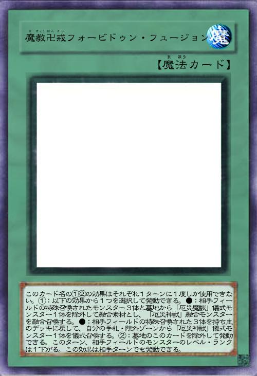 | このカード名の①②の効果はそれぞれ1ターンに1度しか使用できない。①:以下の効果から1つを選択して発動できる。●:相手フィールドの特殊召喚されたモンスター3体と墓地から「厄災魔獣」儀式モンスター1体を除外して融合素材とし、「厄災神獣」融合モンスターを融合召喚する。●:相手フィールドの特殊召喚された3体を持ち主のデッキに戻して、自分の手札・除外ゾーンから「厄災神獣」儀式モンスター1体を儀式召喚する。②:墓地のこのカードを除外して発動できる。このターン、相手フィールドのモンスターのレベル・ランクは1下がる。この効果は相手ターンでも発動できる。 | |||