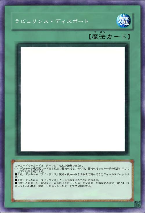 | このカード名のカードは1ターンに1枚しか発動できない。 ①:デッキから通常罠カードを3枚まで墓地へ送る。その後、墓地へ送ったカードの枚数に応じて、以下の効果を適用する。 ●1枚:デッキから「ラビュリンス」魔法・罠カードを2枚まで選んで自分フィールドにセットする。 ●2枚:デッキから「ラビュリンス」カード1枚を選んで手札に加える。 ●3枚:このターン、自分フィールドに「ラビュリンス」モンスターが存在する場合、自分は「ラビュリンス」魔法・罠カードをセットしたターンでも発動できる。 | |||