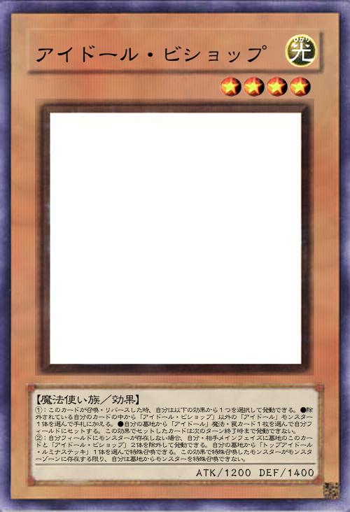 | ①:このカードが召喚・リバースした時、自分は以下の効果から1つを選択して発動できる。●除外されている自分のカードの中から「アイドール・ビショップ」以外の「アイドール」モンスター1体を選んで手札に加える。●自分の墓地から「アイドール」魔法・罠カード1枚を選んで自分フィールドにセットする。この効果でセットしたカードは次のターン終了時まで発動できない。 ②:自分フィールドにモンスターが存在しない場合、自分・相手メインフェイズに墓地のこのカードと「アイドール・ビショップ」2体を除外して発動できる。自分の墓地から「トップアイドール・ルミナステッキ」1体を選んで特殊召喚できる。この効果で特殊召喚したモンスターがモンスターゾーンに存在する限り、自分は墓地からモンスターを特殊召喚できない。 | |||