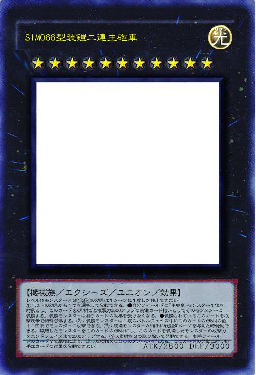 | レベル11モンスター×3①③④の効果は1ターンに1度しか使用できない。 ①:以下の効果から1つを選択して発動できる。●自分フィールドの「甲虫皇」モンスター1体を対象とし、このカードをX素材ごと攻撃力2500アップの装備カード扱いとしてそのモンスターに装備する。装備モンスターは相手カードの効果を受けなくなる。●装備されているこのカードを攻撃表示で特殊召喚する。②:装備モンスターは1度のバトルフェイズ中にこのカードのX素材の数+1回までモンスターに攻撃できる。③:装備モンスターが相手に戦闘ダメージを与えた時発動できる。破壊したモンスターをこのカードのX素材にし、このカードを装備したモンスターの攻撃力をエンドフェイズまで2000アップする。④:X素材を3つ取り除いて発動できる。相手フィールドのカード全て墓地に送り、送った枚数×600のダメージを与える。このカードの発動に対し相手はカードの効果を発動できない。 | |||
