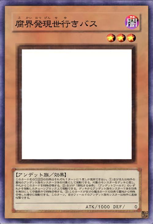 | このカード名の①②③の効果はそれぞれ1ターンに1度しか使用できない。①:自分または相手の墓地のアンデット族モンスター3体を対象にして発動できる。対象のモンスターをデッキに戻し、手札からこのカードを特殊召喚する。②:自分が「腐敗する世界」「アンデットワールド」のいずれかを発動したチェーンブロック上で発動できる。デッキからアンデット族モンスター1体を効果を無効にして守備表示で特殊召喚する。③:このカードが自分の魔法カードの効果で墓地から特殊召喚した場合に発動できる。このターン、自分フィールドのアンデット族モンスターは相手に直接攻撃できる。 | |||