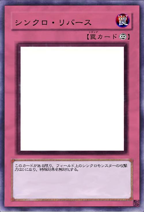 | このカードがある限り、フィールド上のシンクロモンスターの攻撃力は0になり、特殊効果を無効化する。 | |||