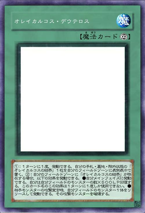 | ①:1ターンに1度、発動できる。自分の手札・墓地・除外状態の「オレイカルコスの結界」1枚を自分のフィールドゾーンに表側表示で置く。②:自分のフィールドゾーンに「オレイカルコスの結界」が存在する場合、以下の効果を発動できる。●自分メインフェイズに発動できる。自分は自分フィールドのモンスターの数×500LP回復する。このカード名のこの効果は1ターンに1度しか使用できない。●相手モンスターの攻撃宣言時、自分フィールドのモンスター1体をリリースして発動できる。その攻撃モンスターを破壊する。 | |||