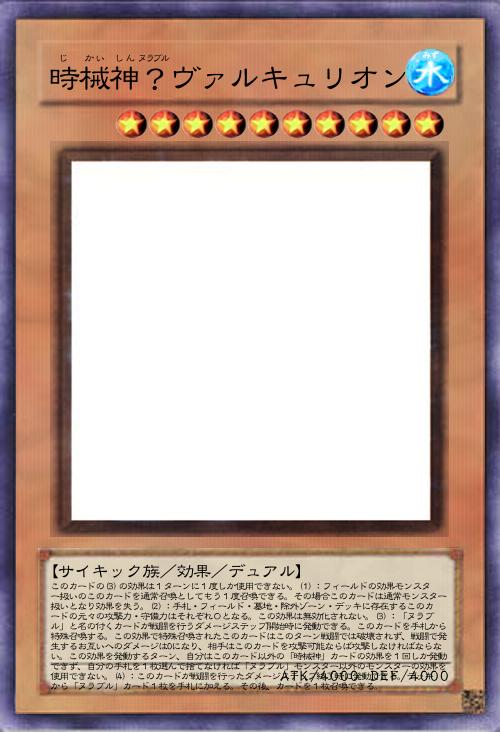 | このカードの(3)の効果は1ターンに1度しか使用できない。(1):フィールドの効果モンスター扱いのこのカードを通常召喚としてもう1度召喚できる。その場合このカードは通常モンスター扱いとなり効果を失う。(2):手札・フィールド・墓地・除外ゾーン・デッキに存在するこのカードの元々の攻撃力・守備力はそれぞれ0となる。この効果は無効化されない。(3):「ヌラブル」と名の付くカードが戦闘を行うダメージステップ開始時に発動できる。このカードを手札から特殊召喚する。この効果で特殊召喚されたこのカードはこのターン戦闘では破壊されず、戦闘で発生するお互いへのダメージは0になり、相手はこのカードを攻撃可能ならば攻撃しなければならない。この効果を発動するターン、自分はこのカード以外の「時械神」カードの効果を1回しか発動できず、自分の手札を1枚選んで捨てなければ「ヌラブル」モンスター以外のモンスターの効果を使用できない。(4):このカードが戦闘を行ったダメージステップ終了時に発動できる。デッキから「ヌラブル」カード1枚を手札に加える。その後、カードを1枚召喚できる。 | |||