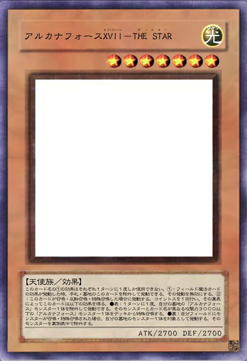 | このカード名の①の効果はそれぞれ1ターンに1度しか使用できない。①:フィールド魔法カードの効果が発動した時、手札・墓地のこのカードを除外して発動できる。その発動を無効にする。②:このカードが召喚・反転召喚・特殊召喚した場合に発動する。コイントスを1回行い、その裏表によってこのカードは以下の効果を得る。●表:1ターンに1度、自分の墓地の「アルカナフォース」モンスター1体を除外して発動できる。そのモンスターとカード名が異なる攻撃力3000以下の「アルカナフォース」モンスター1体をデッキから特殊召喚する。●裏:自分フィールドにモンスターが召喚・特殊召喚された場合、自分の墓地のモンスター1体を対象として発動する。そのモンスターを裏側表示で除外する。 | |||