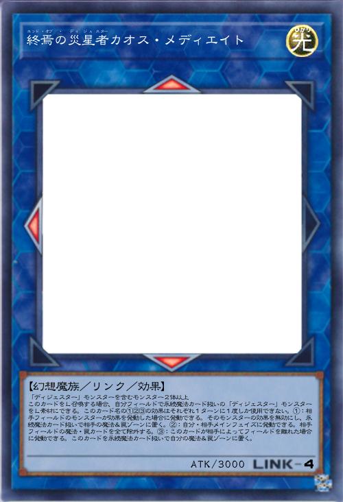 | 「ディジェスター」モンスターを含むモンスター2体以上 このカードをL召喚する場合、自分フィールドで永続魔法カード扱いの「ディジェスター」モンスターをL素材にできる。このカード名の①②③の効果はそれぞれ1ターンに1度しか使用できない。①:相手フィールドのモンスターが効果を発動した場合に発動できる。そのモンスターの効果を無効にし、永続魔法カード扱いで相手の魔法&罠ゾーンに置く。②:自分・相手メインフェイズに発動できる。相手フィールドの魔法・罠カードを全て除外する。③:このカードが相手によってフィールドを離れた場合に発動できる。このカードを永続魔法カード扱いで自分の魔法&罠ゾーンに置く。 | |||