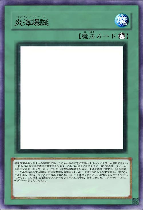 | 海竜族儀式モンスターの降臨に必要。このカード名の②の効果は1ターンに1度しか使用できない。①:レベルの合計が儀式召喚するモンスターのレベル以上になるように、自分の手札・フィールドのモンスターをリリースし、手札から海竜族の儀式モンスター1体を儀式召喚する。②:このカードが墓地に存在する場合、自分の墓地の海竜族モンスター1体を除外して発動できる。自分フィールド上の「炎海」モンスターまたは儀式モンスター1体をリリースし、墓地のこのカードを手札に加える。この効果で炎属性モンスターをリリースした場合、相手にそのモンスターのレベル×200ダメージを与えてもよい。 | |||